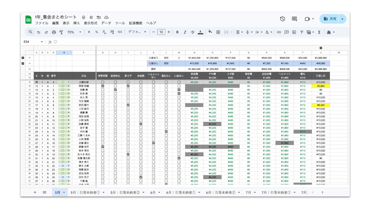 - 未納対応の可視化:引き落としができなかった場合もシート上で漏れなく記録・管理でき、迅速な対応をサポートします。